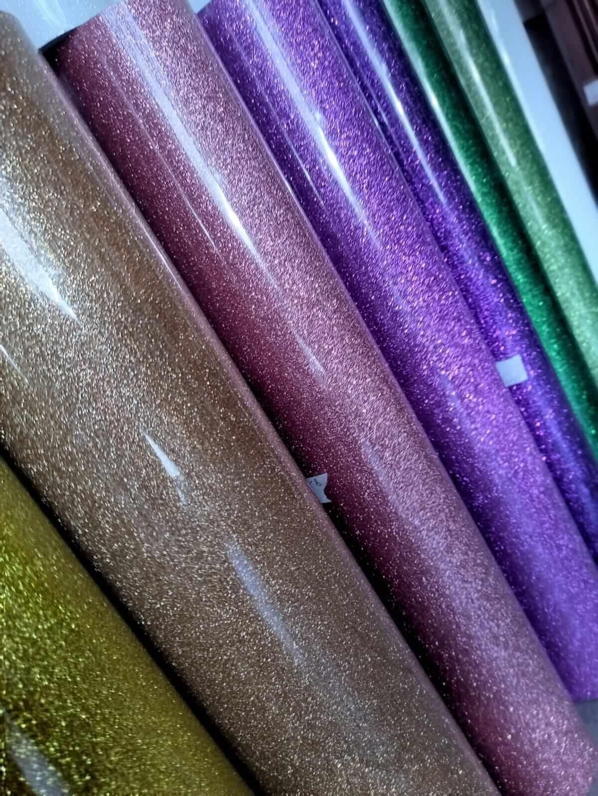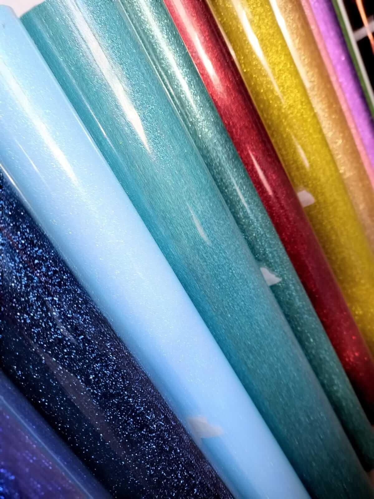 - Vinil textil mate, detalle, holográfico, metálico, flock, glitter, sublimables, reflejante y fotoluminiscente